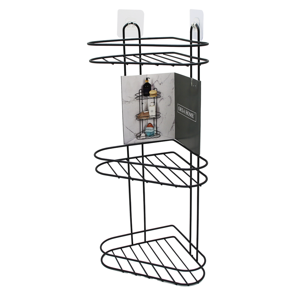 3 KATLI SİYAH METAL KÖŞE RAFI