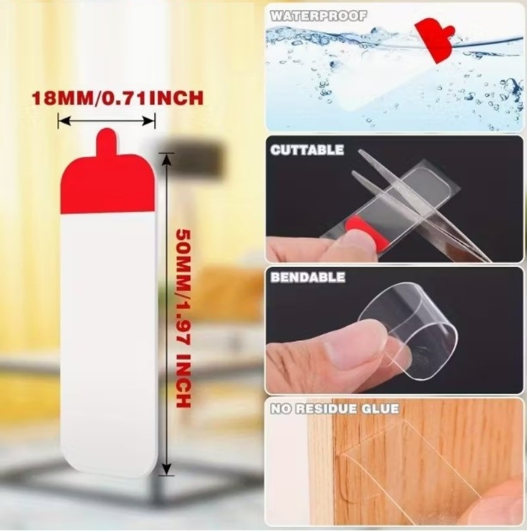 Duvarlarınızı delmeden, çivi çakmadan eşyalarınızı sabitlemek artık çok kolay. 60'lı Paket Hazır Kesilmiş Çift Taraflı Bant, şeffaf yapısı ve yüksek yapışma gücüyle dekorasyon, düzenleme ve sabitleme işlerinizdeki en büyük yardımcınız olacak. Özel olarak kesilmiş boyutları (18mm x 50mm) sayesinde makasla uğraşmanıza gerek kalmadan pratik bir kullanım sunar.
