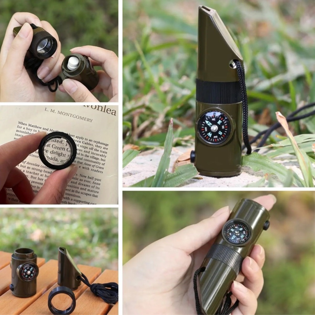 7'si 1 Arada Acil Durum Düdüğü ile güvenli ve hazırlıklı olun! Kamp, doğa yürüyüşleri veya acil durumlarda ihtiyaç duyabileceğiniz 7 işlevi bir arada sunan bu çok amaçlı düdük, kompakt tasarımı ile yanınızda taşıyabileceğiniz bir hayat kurtarıcıdır.