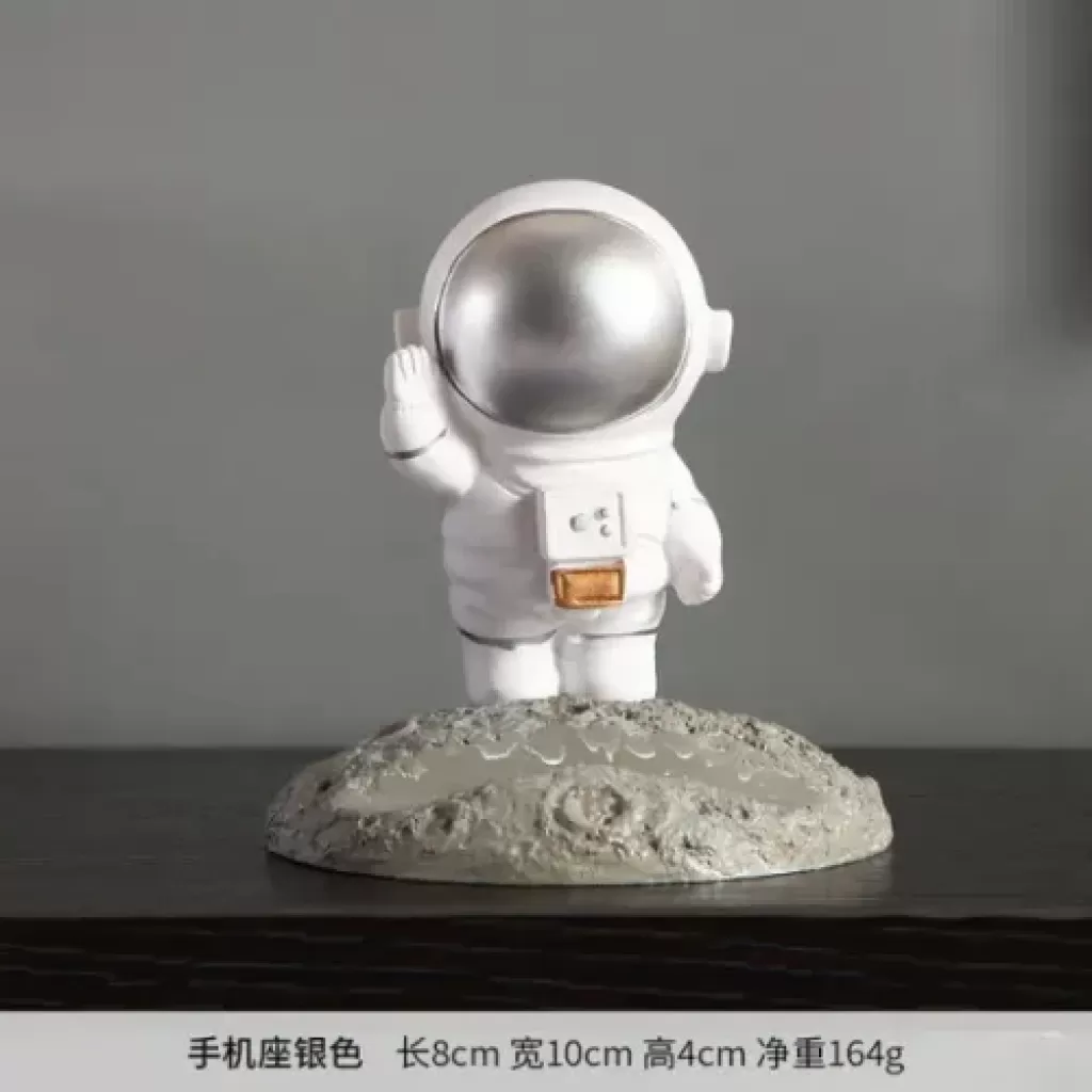 ASTRONOT TELEFON TUTUCU Ürün ÖzellikleriAstronot telefon tutucu ile çalışma masanıza, ofisinize, evinize renk katın !Telefonunuz tam oturur, tutucu üzerindeyken herhangi bir sallanma olmaz.Dekoratif olarak evinizin her bölümünde kullanabilirsiniz.Sert plastikten üretilmiştir.Darbeye ve düşmelere  dayanıklıdır.Ürün Ölçüleri : 10x6.5x9cmÜrün Renkleri : Gümüş , Altın (stok durumuna göre karışık gönderilecektir.)Paket İçeriği1 adet astronot telefon tutucu