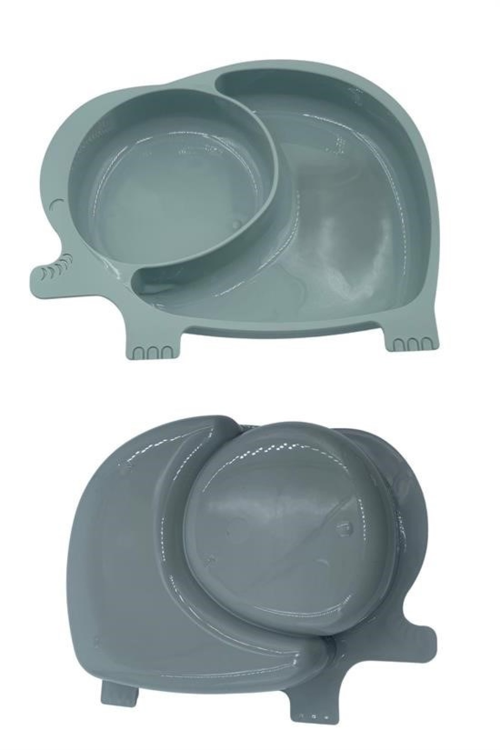 Fil desenli mama kabında bölme olması bebeklerin farklı çeşit yemekleri aynı anda yemesine olanak sağlar