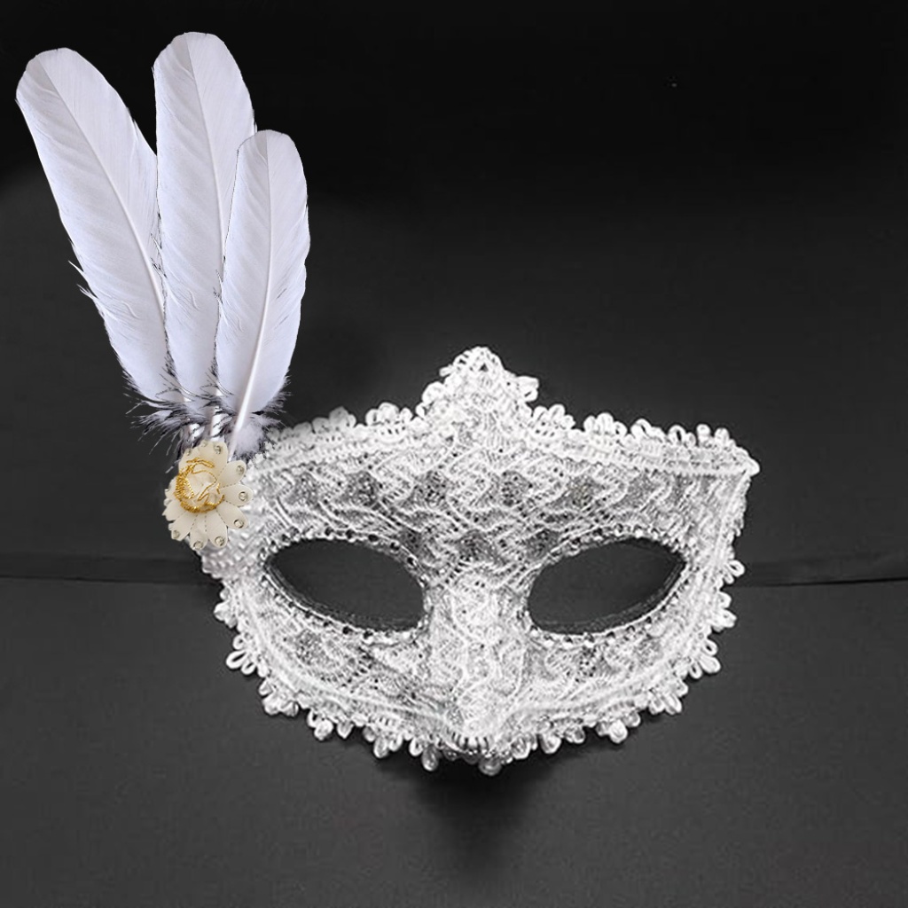 Beyaz, her zaman asil ve sofistike bir renk olarak öne çıkar. Bu maskede, klasik siyahın zarafeti, tüylü detaylarla hareket kazanır. Göz çevresini saran dantel, şıklığına şıklık katarken, taşlarla bezenmiş bölümler, maskenize ışıltı ve parlaklık ekler.