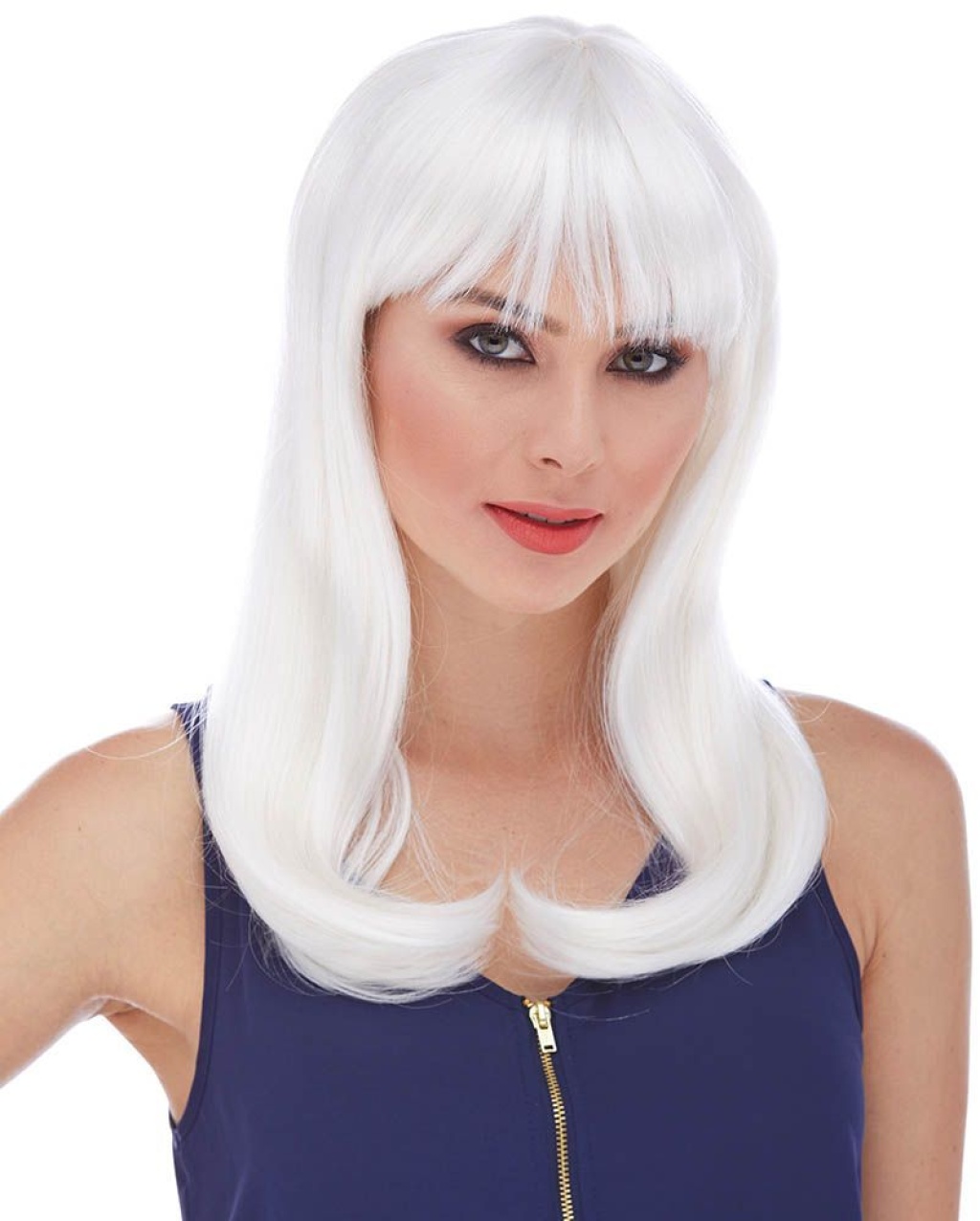 Beyaz Renk Uzun Düz Parti Peruğu (5381)
