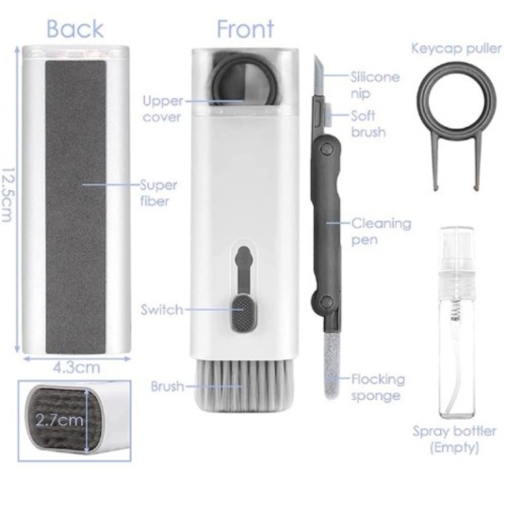 Çok Fonksiyonlu 7 in 1 Profesyonel Elektronik Temizleme KitiÜrün AçıklamasıTüm dijital cihazlarınız için hepsi bir arada temizlik çözümü! 7 in 1 Temizleme Kiti, akıllı telefonlardan kablosuz kulaklıklara, klavyelerden kamera lenslerine kadar tüm hassas elektronik eşyalarınızı ilk günkü temizliğine kavuşturur. Kompakt tasarımı sayesinde tek bir gövdede ihtiyacınız olan her aracı barındırır. Kirli ekranlar, tozlu klavye tuşları ve kulaklıkların ses kanallarındaki inatçı lekeler artık sorun olmaktan çıkıyor.Ürün Özellikleri7 Farklı Temizlik Aracı: Naylon fırça, flok sünger, yüksek yoğunluklu fırça, metal uç, tuş başlığı çektirmesi, ekran temizleme mendili ve sprey şişesi tek bir kitte.Klavye Dostu Tasarım: Dahili tuş çektirmesi ile klavye tuşlarını zarar vermeden çıkarabilir, geniş ve yumuşak fırçasıyla tuş aralarındaki tozları saniyeler içinde süpürebilirsiniz.Detaylı Kulaklık Temizliği: * Metal Uç: İnatçı kirleri kazımak için.Yüksek Yoğunluklu Fırça: Ses çıkışındaki tozları temizlemek için.Flok Sünger: Şarj kutusu içindeki ulaşılması zor alanlar için.Ekran Parlatıcı: Gövde arkasındaki flanel mendil, ekranlardaki parmak izlerini ve yağ lekelerini nazikçe temizler.Taşınabilir Şık Gövde: Sadece 14 cm boyutuyla çantanızda veya masanızda yer kaplamaz, her an kullanıma hazırdır.Kullanım AlanlarıMobil Cihazlar: Akıllı telefon ekranları, şarj girişleri ve hoparlör ızgaraları.Bilgisayar ve Tablet: Laptop klavyeleri, tablet ekranları ve monitörler.Ses Ekipmanları: AirPods ve tüm Bluetooth kulaklık modelleri, şarj kutuları.Optik Cihazlar: Kamera lensleri ve vizörler.Ev Elektroniği: TV ekranları ve uzaktan kumandalar.Teknik BilgilerÜrün Boyutu: Yaklaşık 143 x 44 x 28 mmMalzeme: Dayanıklı ABS, Silikon, Naylon ve FlanelRenk: Modern ve şık tasarımPaket İçeriği1 Adet Çok Fonksiyonlu 7 in 1 Temizleme Kiti (Gövdeye entegre araçlar)1 Adet Boş Sprey Şişesi (İçerisine su veya ekran temizleme solüsyonu ekleyebilirsiniz)Önemli Not: Paket içerisindeki sprey şişesi, taşıma güvenliği nedeniyle boş olarak gönderilmektedir. İçine kendi tercih ettiğiniz temizleme sıvısını ekleyebilirsiniz.