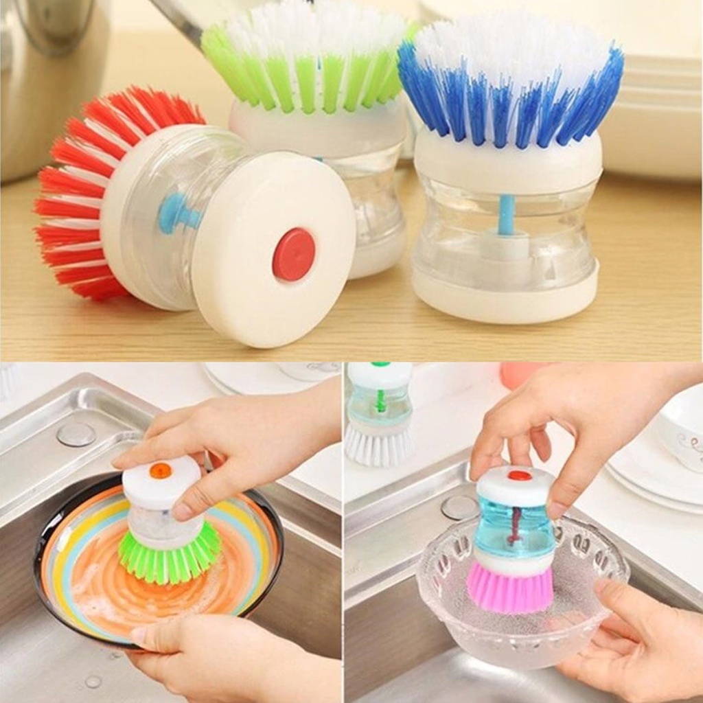 Pratik bulaşık yıkama fırçası bulaşık süngerini kullanmak için sıvı deterjan haznesine bulaşık deterjanı koyun üstteki düğmeye her bastığınızda bir miktar deterejan fırçanın kıllarının dibinden fırçaya akar!