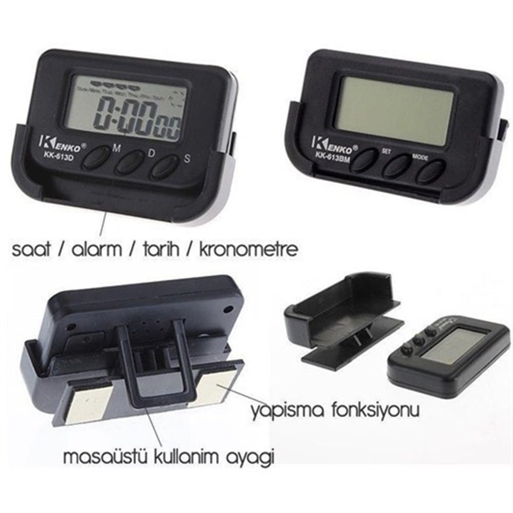 Ev, iş yerinde ve arabada kullanabileceğiniz plastik kasa içerisinde kolay okunur ekrana sahip Kronometreli Araç ve Ev tipi Dijital Saat.
