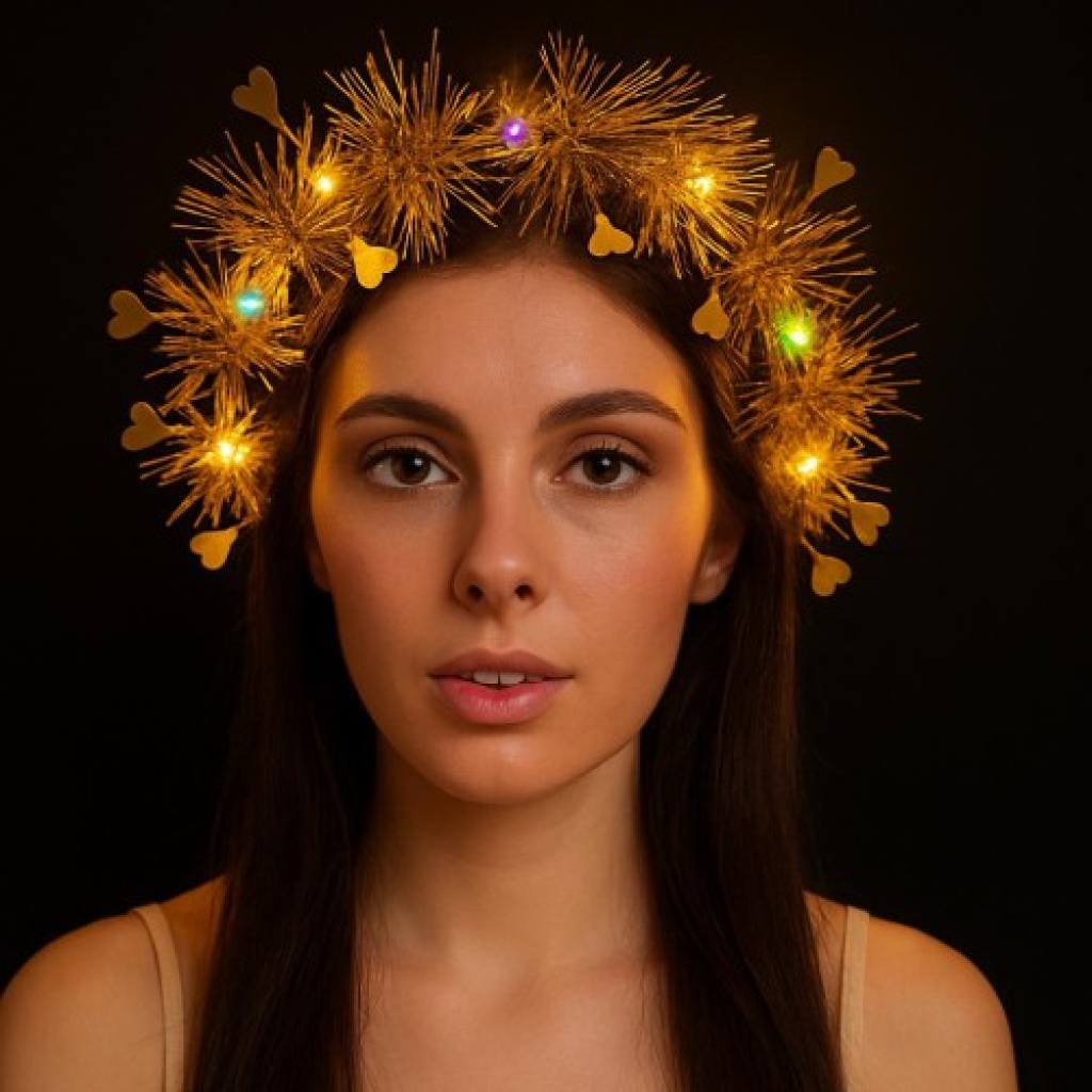 Kalp Püsküllü Altın Renk 3 Modlu LED Işıklı Parti TacıSıradan aksesuarları bir kenara bırakın ve gecenin parlayan yıldızı olun! Kalp Püsküllü Gece Parıltısı Tacı, altın simli dokusu ve hareketli kalp figürleriyle sadece bir aksesuar değil, başlı başına bir eğlence kaynağıdır. Üç farklı ışık kademesiyle modunuza ve müziğin ritmine göre ışığınızı ayarlayın, tüm bakışları üzerinizde toplayın!Ürün Özellikleri ve Avantajları3 Kademeli LED Teknolojisi: Tek bir tuşla sabit ışık, yavaş flaş veya hızlı yanıp sönen modlar arasında geçiş yapabilirsiniz. Her türlü parti ritmine anında uyum sağlar.Lüks Altın Detaylar: Altın rengi simli teller ve sallanan kalp püskülleri, ışıklar kapalıyken bile şık ve asil bir görünüm sunar.Hafif ve Esnek Yapı: Yüksek kaliteli malzemeden üretilen esnek iskeleti sayesinde her kafa yapısına uyum sağlar, baş ağrısı yapmaz ve saatlerce konforla takılabilir.Hemen Kullanıma Hazır: Ürün içerisinde pilleriyle birlikte gönderilir; paketi açar açmaz kutlamaya başlayabilirsiniz.Dayanıklı Tasarım: Sağlam simli teller ve korumalı LED mekanizması sayesinde festivallerin ve hareketli dans pistlerinin heyecanına dayanıklıdır.Kullanım AlanlarıDoğum Günleri ve Bekarlığa Veda: Gecenin odak noktası olmak isteyen gelin adayları ve doğum günü sahipleri için mükemmeldir.Festival ve Konserler: Kalabalık ortamlarda arkadaşlarınızın sizi kolayca bulmasını sağlar ve festival ruhunu yansıtır.Yılbaşı ve Kostüm Partileri: Altın rengiyle yılbaşı ışıltısına en çok yakışan, eğlenceli bir tamamlayıcıdır.Sosyal Medya Çekimleri: TikTok, Reels ve fotoğraf çekimlerinde ışık efektleriyle etkileyici içerikler üretmenize yardımcı olur.