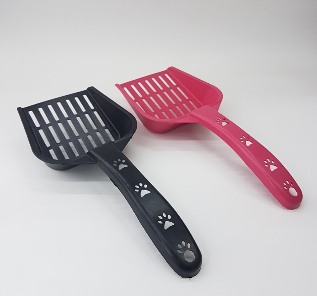 Kedilerin ihtiyaçlarını giderdikten sonra kum kabındaki atıkların temizliğinde kullanılan kedi kum küreğidir.