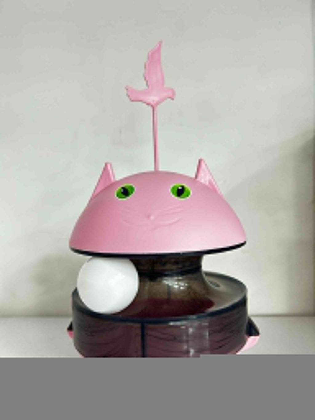 Hacıyatmaz sistemi sayesinde oyuncak devrilmez, her darbede tekrar ayağa kalkar ve mama çıkışı sağlayarak kedinizin ilgisini sürekli canlı tutar.