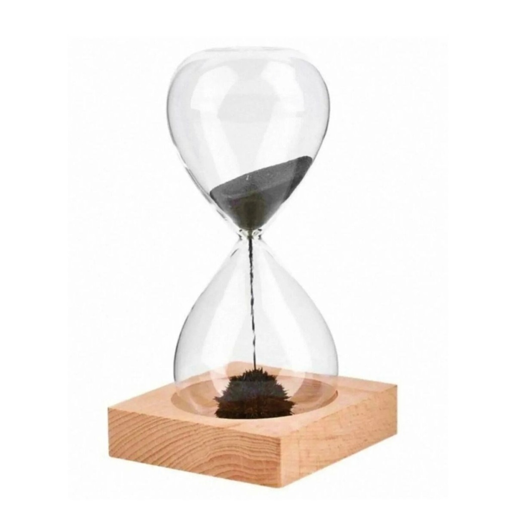mıknatıslı cam kum saati; ofis hediyesi, masaüstü aksesuarı ve dekoratif obje arayanlar için zarif ve dikkat çekici bir tercihtir.