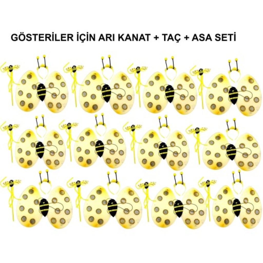 Okul Gösterileri İçin 12'li Arı Kanadı Kostüm Seti | Arı Viz Viz Etkinlik PaketiSınıfın minik arıları sahneye çıkmaya hazır! 12'li Arı Kanadı Seti, okul gösterilerinden yıl sonu müsamarelerine kadar grup etkinlikleri için eksiksiz ve ekonomik bir çözüm sunar. Kanat, taç ve asadan oluşan bu 3 parçalı set, çocukların hayal gücünü renklendirirken sahnede tam bir görsel bütünlük yaratır.Paket İçeriği (Her Çocuk İçin 3 Parça)12 Adet Arı Kanadı: Sarı tül üzerine siyah simli hatlarla detaylandırılmış, hafif ve esnek yapılı kanatlar.12 Adet Arı Tacı: Üzerinde sevimli ve hareketli antenler bulunan, başı sıkmayan konforlu taçlar.12 Adet Arı Asası: Ucunda arı figürü ve şerit detayları bulunan, gösteriye hareket katan eğlenceli asalar.Öne Çıkan ÖzelliklerGrup Etkinlikleri İçin İdeal: 12 kişilik bu dev set, sınıf gösterilerinde veya toplu doğum günlerinde tüm çocukların aynı konseptte parlamasını sağlar.Canlı Sarı-Siyah Kontrastı: Arı karakterinin en ikonik renkleri kullanılarak tasarlanmıştır; sahnede ve fotoğraflarda yüksek fark edilirlik sunar.Kolay Giyilebilir Tasarım: Kanatlar, kolların içinden geçtiği yumuşak lastikli yapısı sayesinde bir çanta gibi kolayca takılıp çıkarılabilir.Hafif ve Hareket Özgürlüğü: Çocukların dans ederken veya oyun oynarken rahatsız olmayacağı, ağırlık yapmayan kaliteli tül ve plastik malzemelerden üretilmiştir.Dayanıklı Yapı: Gösteri provaları ve kutlama boyunca formunu koruyan, uzun ömürlü malzeme kalitesi.Kullanım AlanlarıOkul Müsamareleri: "Doğa" veya "Arılar" temalı sahne şovlarında profesyonel bir görünüm sağlar.Yıl Sonu Gösterileri: Anaokulu ve ilkokul etkinliklerinin en sevilen kostüm grubudur.Temalı Doğum Günleri: "Maya the Bee" veya genel arı konseptli partilerde küçük davetlilere dağıtılabilecek harika bir hediye seti.Fotoğraf Çekimleri: Mezuniyet yıllıkları veya okul albümleri için neşeli kareler oluşturur.Neden Bu Seti Seçmelisiniz?Eksiksiz Çözüm: Kanat, taç ve asa bir arada olduğu için ek aksesuar arama zahmetine son verir.Ekonomik Avantaj: 12'li paket alımı, tekli alımlara göre bütçenize büyük katkı sağlar.Hızlı Kostüm Dönüşümü: Çocuklar siyah veya sarı bir tişörtün üzerine bu seti taktığında anında kostümleri hazır hale gelir.Teknik Özellikler TablosuÖzellikDetayKarakterBal ArısıPaket İçeriği12 Takım (36 Parça Toplam)RenkParlak Sarı & SiyahMalzemeTül, Plastik, Esnek LastikYaş Grubu3-10 Yaş Arası Uygun