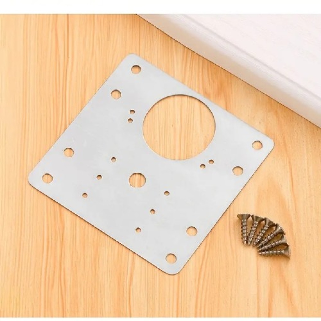 Paslanmaz Çelik Menteşe Onarım PlakasıÜrün AçıklamasıMutfak dolapları, gardıroplar veya banyo dolaplarında zamanla oluşan menteşe gevşemelerine son! Nem, sık kullanım veya ahşabın kalitesizliği nedeniyle menteşe vidalarının yerinden çıkması ve kapağın sarkması en sık karşılaşılan ev sorunlarından biridir. Paslanmaz Çelik Menteşe Onarım Plakası, hasarlı alanı tamamen kapatarak menteşelerinizi yeniden eski sağlamlığına kavuşturur. Mevcut deliği onarmak yerine alanı geniş bir plaka ile destekleyen bu çözüm, dolap kapağını değiştirmeye gerek kalmadan profesyonel bir tamir imkanı sunar.Ürün ÖzellikleriHasar Kapatıcı Tasarım: Orijinal hasarlı bölgeyi kapatacak kadar geniş yüzeyi sayesinde kötü görüntüyü gizler ve yeni vidalar için sağlam bir zemin oluşturur.304 Paslanmaz Çelik: Yüksek kaliteli paslanmaz çelikten üretilmiştir; suya ve neme karşı dayanıklıdır, mutfak ve banyo gibi nemli ortamlarda paslanma yapmaz.Çok Delikli Sabitleme: Üzerindeki çok sayıda delik, farklı menteşe tiplerine uyum sağlarken plakanın kapıya veya yan panele maksimum güçle tutunmasını sağlar.Çift Yönlü Kullanım: Hem dolap kapağı (hareketli kısım) hem de dolap gövdesi (sabit kısım) üzerindeki menteşe yerleri için uygundur.Pratik Kurulum: Herhangi bir teknik ustalık gerektirmez; paket içerisinde gelen vidalarla saniyeler içinde monte edilebilir.Kullanım AlanlarıMutfak Dolapları: Nem ve buhar nedeniyle deforme olmuş menteşe yuvalarının onarımında.Gardırop ve Portmantolar: Ağır kapakların yüküyle genişleyen vida deliklerini güçlendirmek için.Banyo Mobilyaları: Suyla temas sonucu şişen ahşap panellerdeki menteşeleri sabitlemek amacıyla.Ofis Mobilyaları: Sık açılıp kapanan dolap kapaklarının ömrünü uzatmak için.Teknik BilgilerMalzeme: Paslanmaz ÇelikBoyut: 9 cm x 9 cmKalınlık: 0.8 mmUygulama: Vidalı montaj (Matkap veya tornavida ile)Paket İçeriği1 Adet Paslanmaz Çelik Menteşe Onarım Plakası6 Adet Montaj Vidası