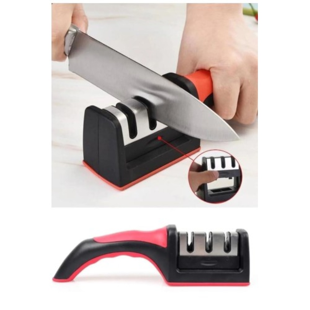 Profesyonel 3 Kademeli Bıçak Bileyici (Elmas, Seramik, Çelik)Ürün AçıklamasıMutfaktaki en büyük yardımcınız bıçaklarınızın performansını ilk günkü keskinliğine döndürün! Profesyonel Bıçak Bileyici, şık paslanmaz çelik gövdesi ve 3 farklı bileme açısıyla her türlü mutfak bıçağını saniyeler içinde jilet kadar keskin hale getirir. Körelmiş bıçakları çöpe atmak yerine, bu ergonomik ve dayanıklı cihaz sayesinde onları yeniden canlandırabilir; et, sebze ve meyveleri zahmetsizce doğramanın keyfini çıkarabilirsiniz.Ürün Özellikleri3 Kademeli Bileme Sistemi:Elmas Yüzey (Hazırlık): Hasar görmüş bıçak ağızlarını onarır ve bileme öncesi düzeltme yapar.Tungsten Çelik (Keskinleştirme): Bıçağa ideal "V" şeklini vererek keskinliği maksimuma çıkarır.Seramik Taş (Parlatma/Çapak Alma): Bileme sonrası oluşan küçük çapakları temizler ve pürüzsüz bir bitiş sağlar.Dayanıklı Paslanmaz Çelik Gövde: Yüksek kaliteli çelikten üretilen gövdesi, korozyona karşı dirençlidir ve yoğun kullanımda dahi formunu kaybetmez.Ergonomik ve Güvenli Tasarım: Ele tam oturan kaymaz sapı ve zemine tutunan tabanı sayesinde bileme işlemi sırasında kayma yapmaz, güvenli bir kullanım sunar.Hızlı ve Kolay Sonuç: Herhangi bir teknik beceri gerektirmeden, bıçağınızı yuvalardan birkaç kez çekerek profesyonel sonuçlar elde etmenizi sağlar.Kullanım AvantajlarıZaman ve Efor Tasarrufu: Körelmiş bıçaklarla uğraşmak yerine, saniyeler içinde keskinleşen bıçaklarla mutfak işlerinizi hızlandırır.Maliyet Etkin: Eski bıçaklarınızı yenilemek zorunda kalmazsınız; tek bir bileyici ile tüm bıçak setinizi yıllarca kullanabilirsiniz.Hijyenik ve Pratik: Temizlemesi kolaydır ve mutfak çekmecenizde çok az yer kaplar.Universal Uyumluluk: Şef bıçaklarından meyve bıçaklarına kadar (tırtıklı bıçaklar hariç) tüm düz ağızlı bıçaklar için uygundur.Nasıl Kullanılır?Bileyiciyi düz ve kuru bir zemine yerleştirin.Bıçağınızı 1. yuvaya (Elmas) yerleştirin ve hafif bir baskıyla sadece kendinize doğru (tek yöne) çekin.Aynı işlemi sırasıyla 2. (Çelik) ve 3. (Seramik) yuvalarda 3-5 kez tekrarlayın.İşlem sonrası bıçağınızı yıkayın veya silin.Teknik BilgilerMalzeme: Paslanmaz Çelik + ABS + Elmas/Tungsten/Seramik BileşenlerBileme Kademesi: 3 Aşamalı (Onarım, Keskinleştirme, Parlatma)Tip: El Tipi Manuel BileyiciPaket İçeriği1 Adet Profesyonel 3 Açılı Bıçak Bileme Cihazı