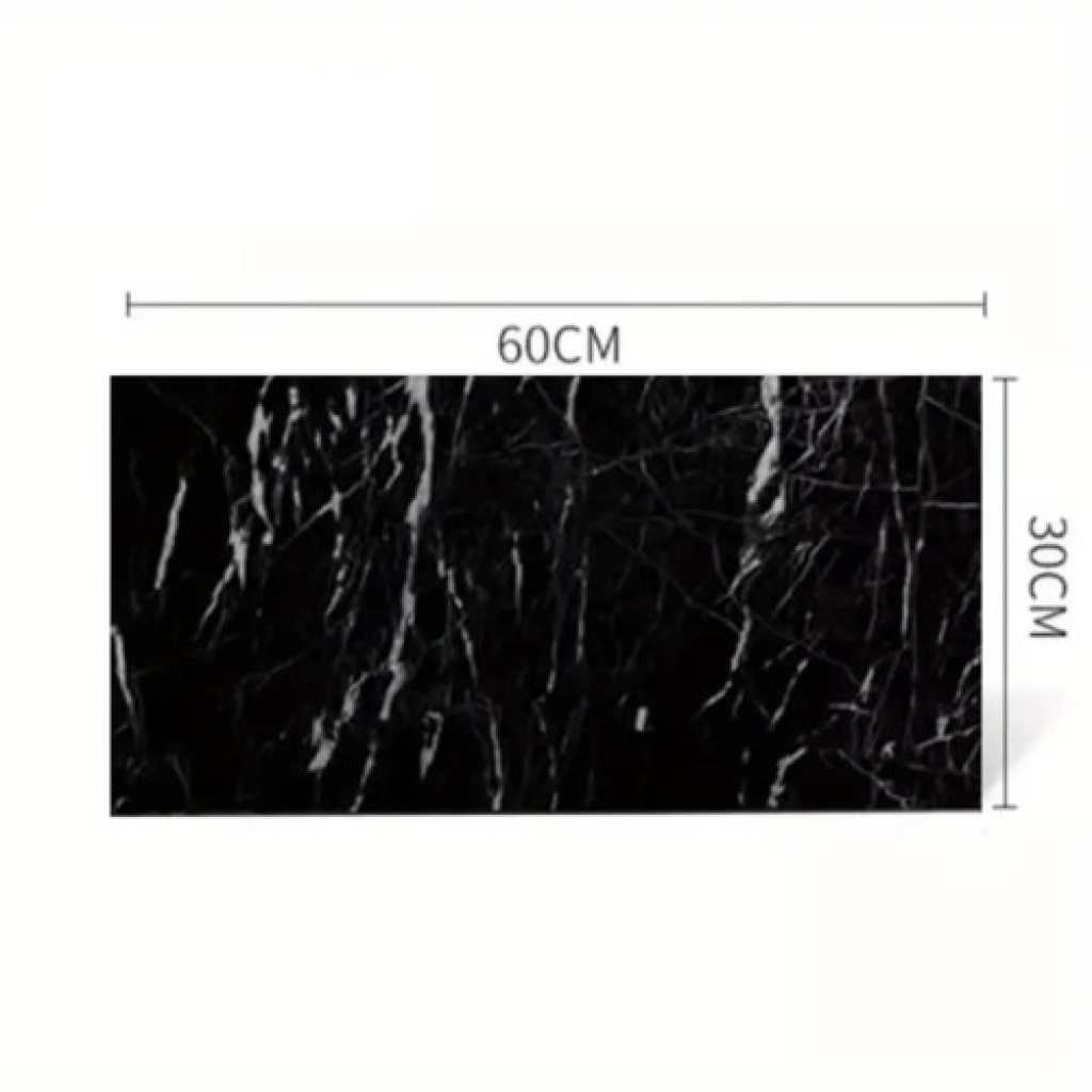 Siyah Mermer Desenli Alüminyum Duvar Sticker (60x30 cm)Ürün AçıklamasıEvinizin havasını dakikalar içinde değiştirmeye hazır mısınız? Siyah Mermer Desenli Alüminyum Duvar Sticker, mutfak ve banyolarınızda lüks mermer görünümünü zahmetsizce elde etmenizi sağlar. Alüminyum ve plastik bileşenli yapısı sayesinde sadece estetik değil, aynı zamanda yüksek koruyucu özelliğe sahiptir. Eski dolapları, yıpranmış tezgahları veya boş duvarları yenilemek için en pratik ve ekonomik çözümdür.Ürün ÖzellikleriTam Koruma Bariyeri: Suya, neme, toza ve yağa karşı tamamen dayanıklıdır. Mutfaktaki yağ sıçramalarından banyodaki buhara kadar her türlü dış etkene karşı yüzeyi korur.Yüksek Sıcaklık Direnci: Ocak arkası gibi yüksek ısıya maruz kalan alanlarda güvenle kullanılabilir; formunu kaybetmez.Kendinden Yapışkanlı Tasarım: Ekstra bir yapıştırıcıya ihtiyaç duymaz. Arka yüzeyindeki koruyucuyu çıkarıp saniyeler içinde düz bir zemine yapıştırabilirsiniz.Ölçüm ve Kesim Kolaylığı: Arka etiketinde bulunan ızgara çizgileri sayesinde alanı tam ölçüsüne göre kolayca kesebilir ve hatasız yerleşim yapabilirsiniz.Geniş Kullanım Alanı: Boyalı duvarlar, pürüzsüz ahşaplar, metal, cam ve plastik yüzeyler dahil tüm düz zeminlerde mükemmel tutuş sağlar.Kolay Temizlik: Leke tutmaz yapısı sayesinde nemli bir bez yardımıyla saniyeler içinde tertemiz olur.Kullanım AlanlarıMutfak: Tezgah üstü, ocak arkası duvar ve mutfak dolaplarının yenilenmesi.Banyo: Lavabo arkası ve fayans üzeri dekorasyon.Mobilya: Eskiyen çalışma masaları, çekmeceler ve gardırop kapakları.Ofis ve Atölye: Modern bir görünüm kazandırılmak istenen duvar ve raflar.Uygulama TalimatıUygulanacak yüzeyi kir ve yağdan tamamen arındırıp kurutun.Arkadaki ızgara çizgilerini kullanarak ihtiyacınız olan ölçüde kesin.Arka koruyucu kağıdı yavaşça açarak yüzeye yapıştırın.Hava kabarcıklarını önlemek için bir kart veya yumuşak bir bezle merkezden dışa doğru düzeltin.Teknik BilgilerMalzeme: Alüminyum Folyo + Plastik (PVC)Desen: Siyah MermerÜrün Ölçüsü: 60 cm x 30 cmÖzellik: Isıya ve Suya DayanıklıPaket İçeriği1 Adet Siyah Mermer Desenli Alüminyum Duvar Sticker