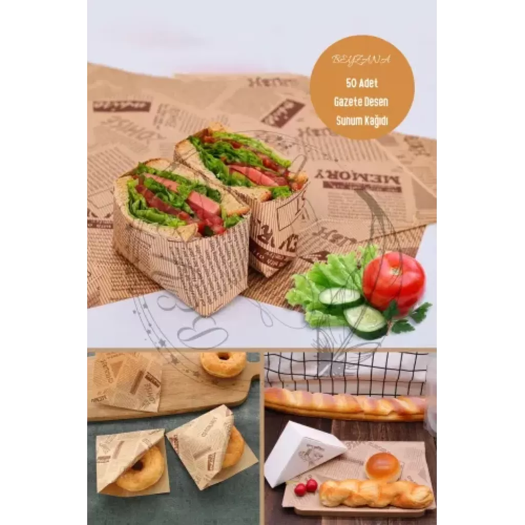 VINTAGE GAZETE DESENLİ SUNUM KAĞIDI 50 ADETZamansız Şıklık ve PratiklikYemek sunumunuza nostaljik bir dokunuş katın ve sunumlarınızı benzersiz kılın! Vintage gazete desenli sunum kağıdı, hem göz alıcı bir estetik sunar hem de kullanım kolaylığı sağlar. Bu özel tasarım yağlı kağıt, dayanıklı yapısı ve su geçirmez özelliği sayesinde sandviç, hamburger ve diğer lezzetli yiyeceklerinizi güvenle sararak sunmanızı mümkün kılar. Retro gazete desenleri ile sofralarınıza klasik bir hava katan bu ürün, aynı zamanda hijyenik ve gıda temasına uygun malzemelerden üretilmiştir.Yemek sunumu konusunda yenilikçi çözümler arayanlar için ideal olan bu sunum kağıdı, kafe, restoran ve ev kullanımı için mükemmel bir seçimdir. Sandviçlerinizi, kurabiyelerinizi ve diğer aperatiflerinizi bu şık kağıtlarla sarmak, misafirlerinize ve müşterilerinize unutulmaz bir deneyim sunmanızı sağlar. Kolayca katlanabilir ve kesilebilir yapısıyla pratik bir kullanım sunan vintage gazete desenli sunum kağıdı, aynı zamanda çevre dostu ve geri dönüştürülebilir materyallerden üretilmiştir.Sofralarınıza geçmişin büyüsünü taşıyan bu zarif ürün, stil ve işlevselliği bir araya getirerek, yemek sunumunuza farklı bir boyut kazandırır. Özel etkinliklerde, günlük sunumlarda ya da paket serviste rahatlıkla kullanabileceğiniz vintage gazete desenli sunum kağıdı, mutfağınızın vazgeçilmez bir parçası olacak. Nostaljinin şıklığını ve pratikliğini bir arada sunan bu eşsiz kağıtlarla, yemek sunumlarınızı sıradanlıktan çıkarın ve her anınızı özel kılın.Paket İçeriği50 adet vintage gazete desenli sunum kağıdı